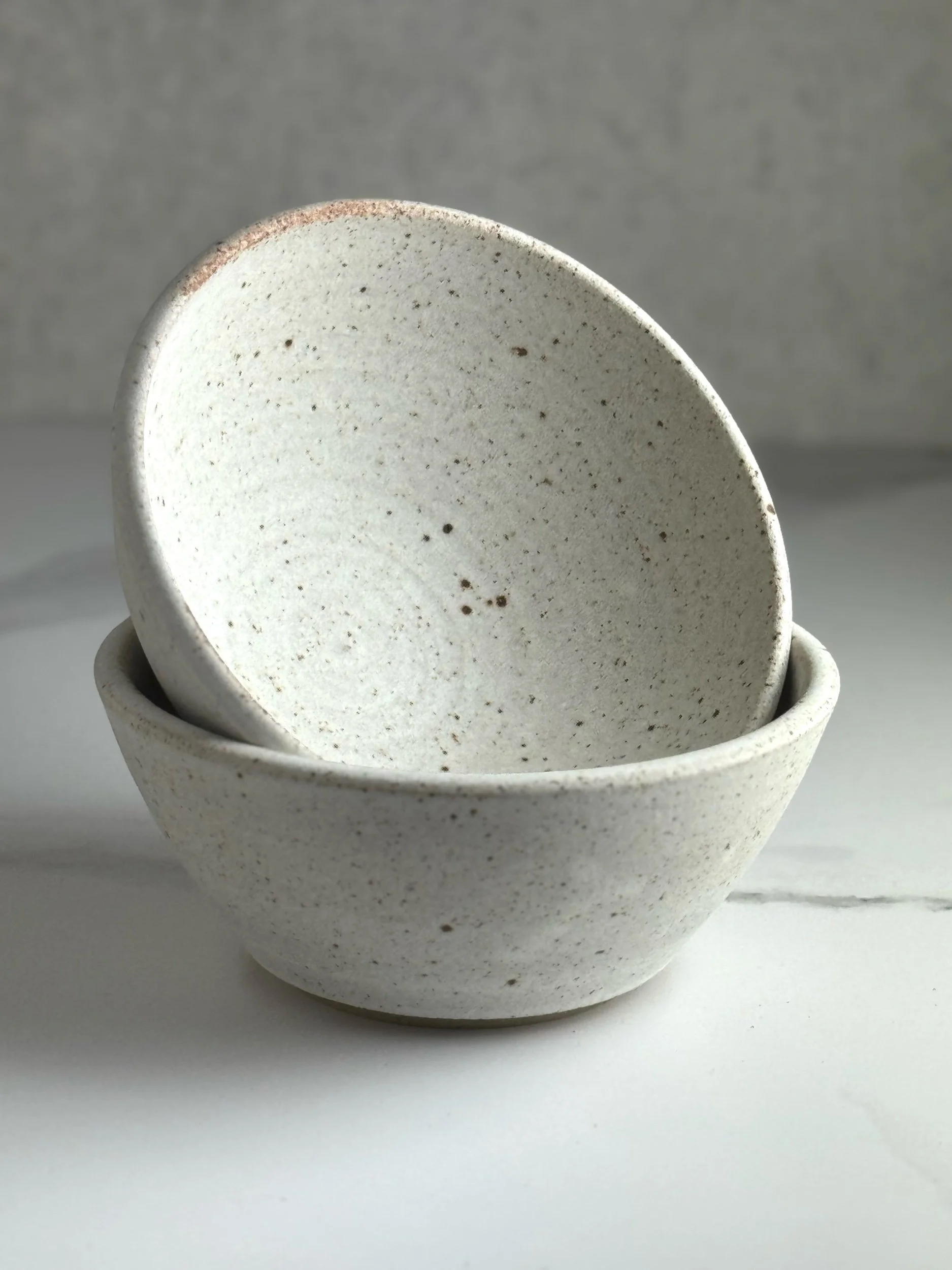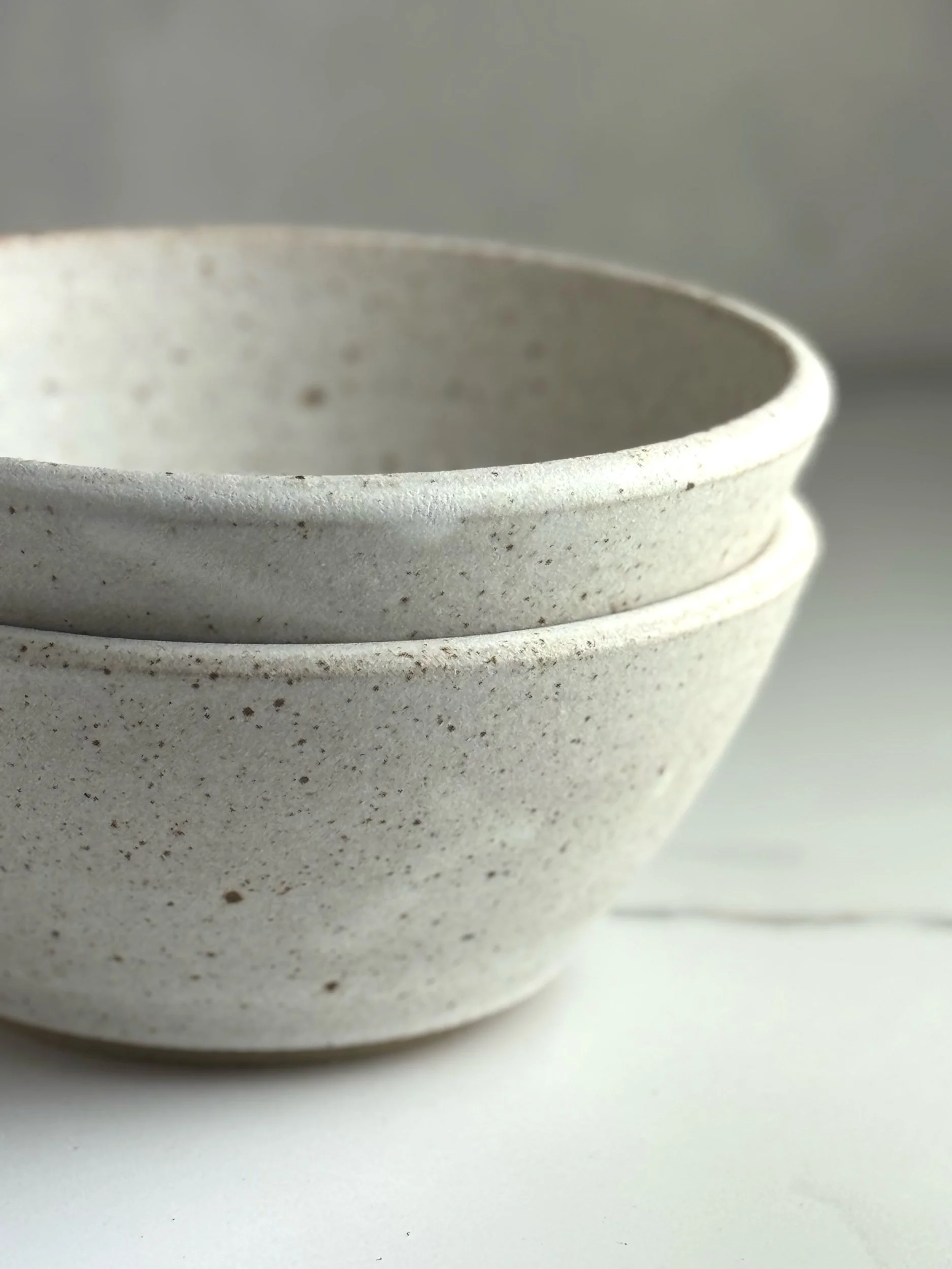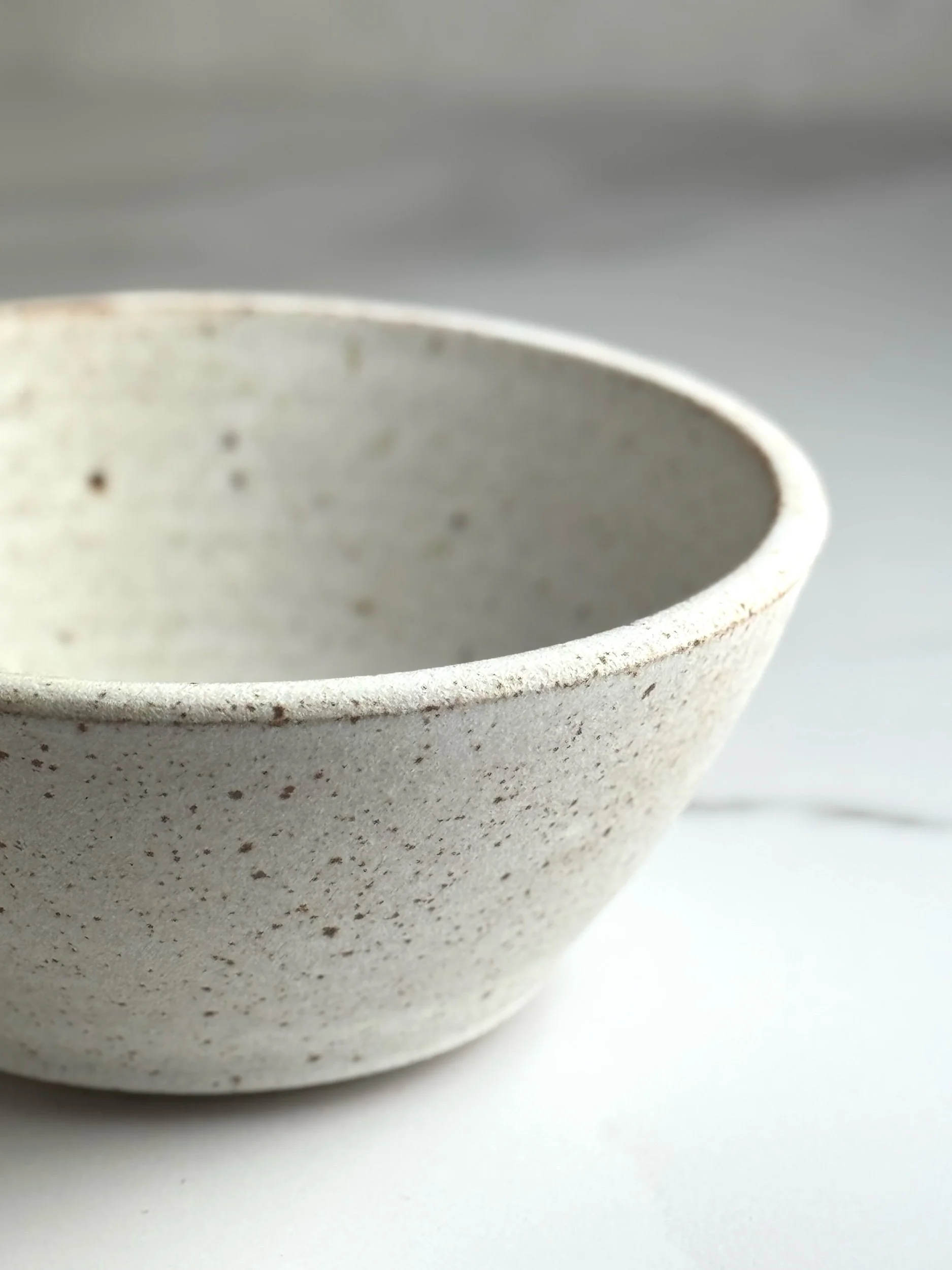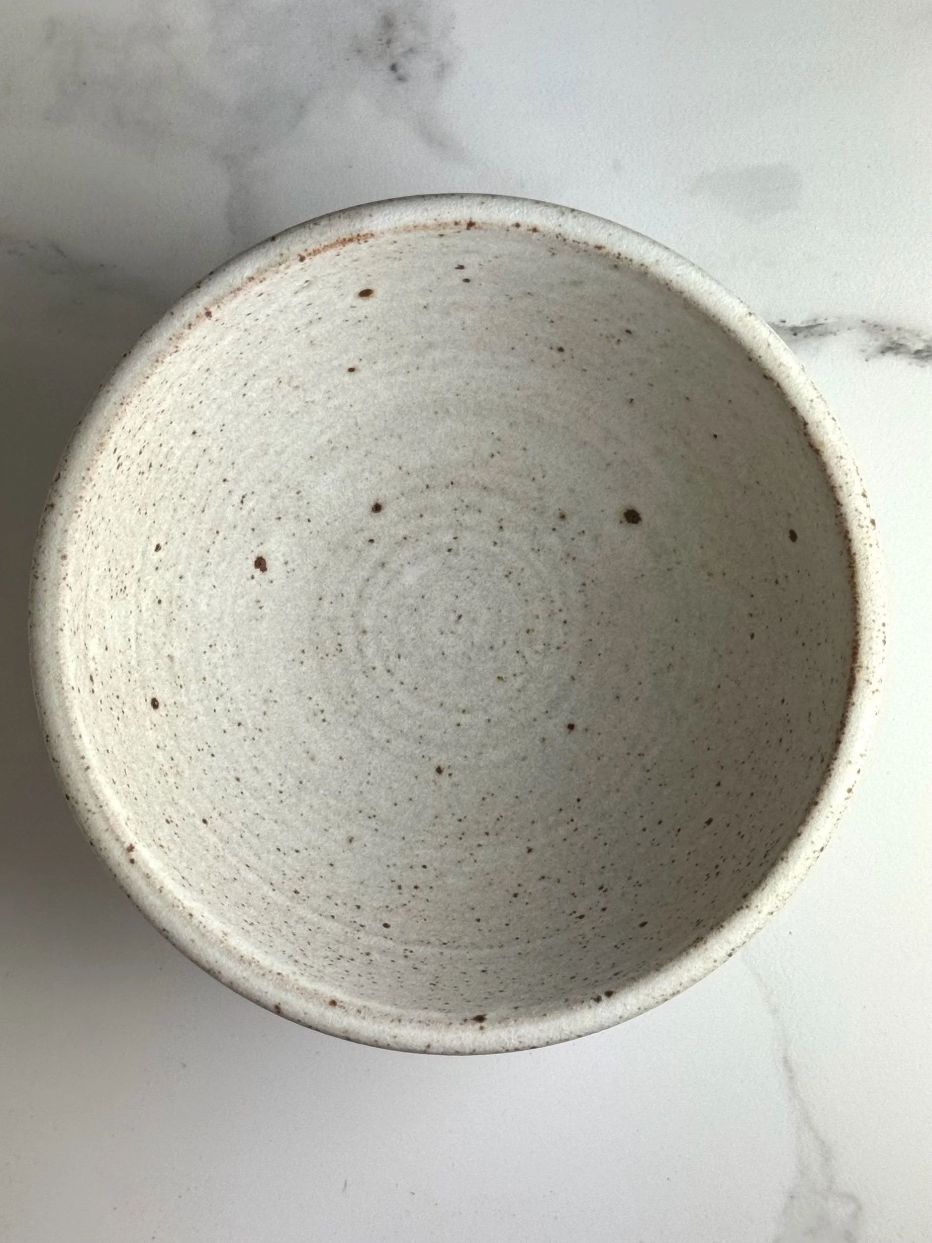 Thrown in a lightly speckled stoneware clay and glazed with a matte white glaze inside and out.