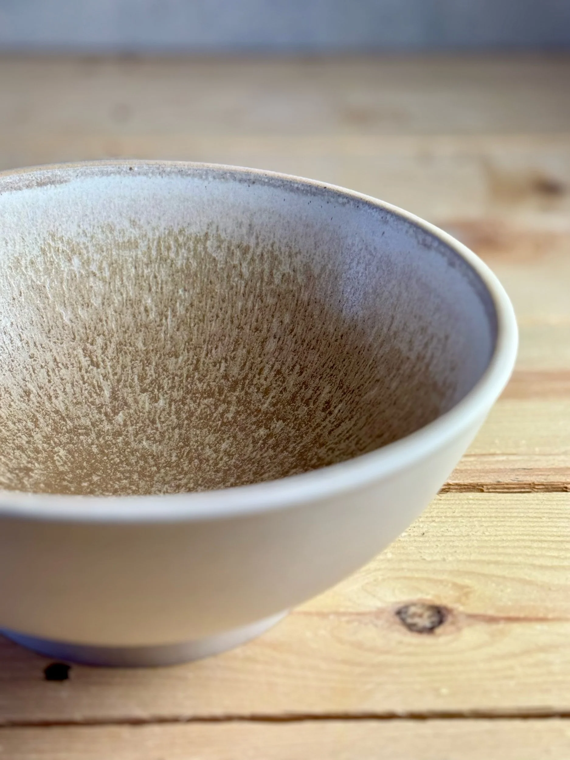 Medium sized bowl with a matte golden oatmeal glazed interior