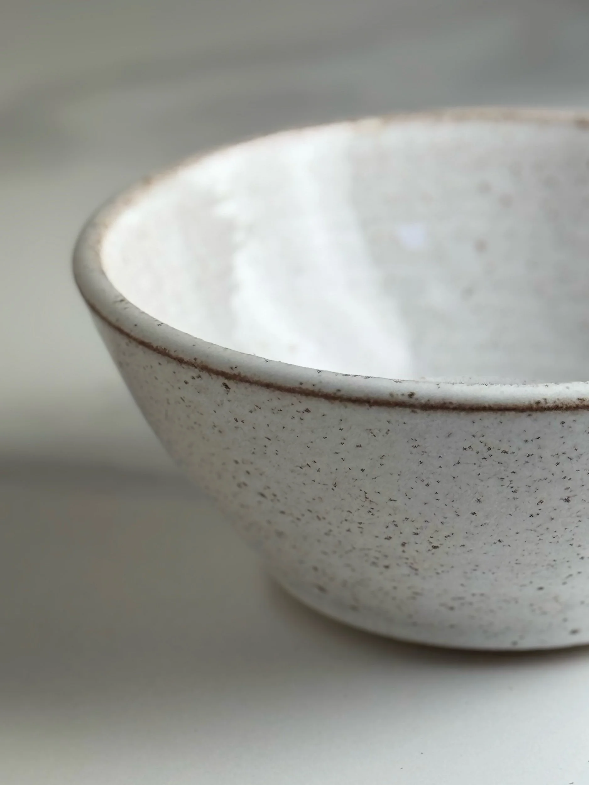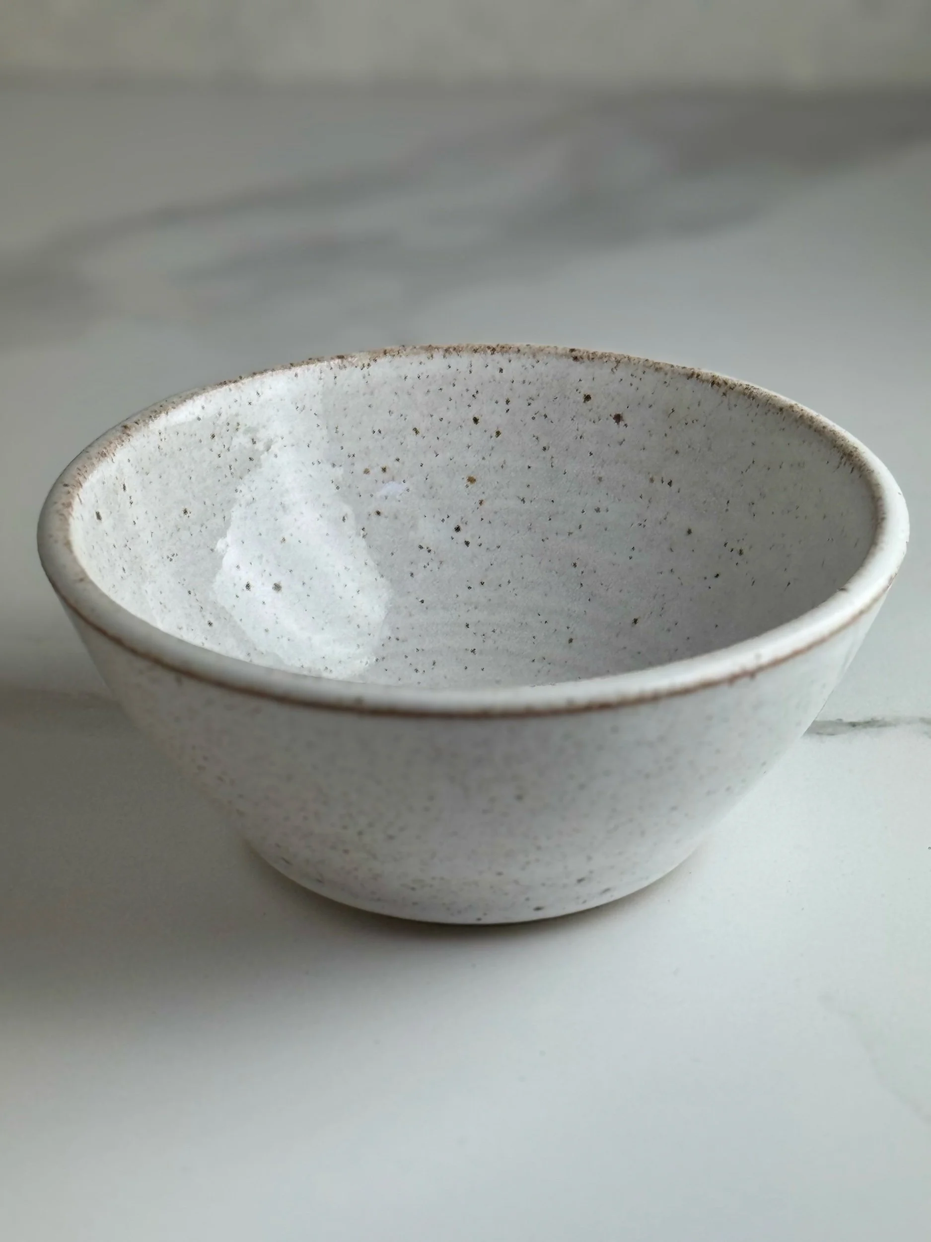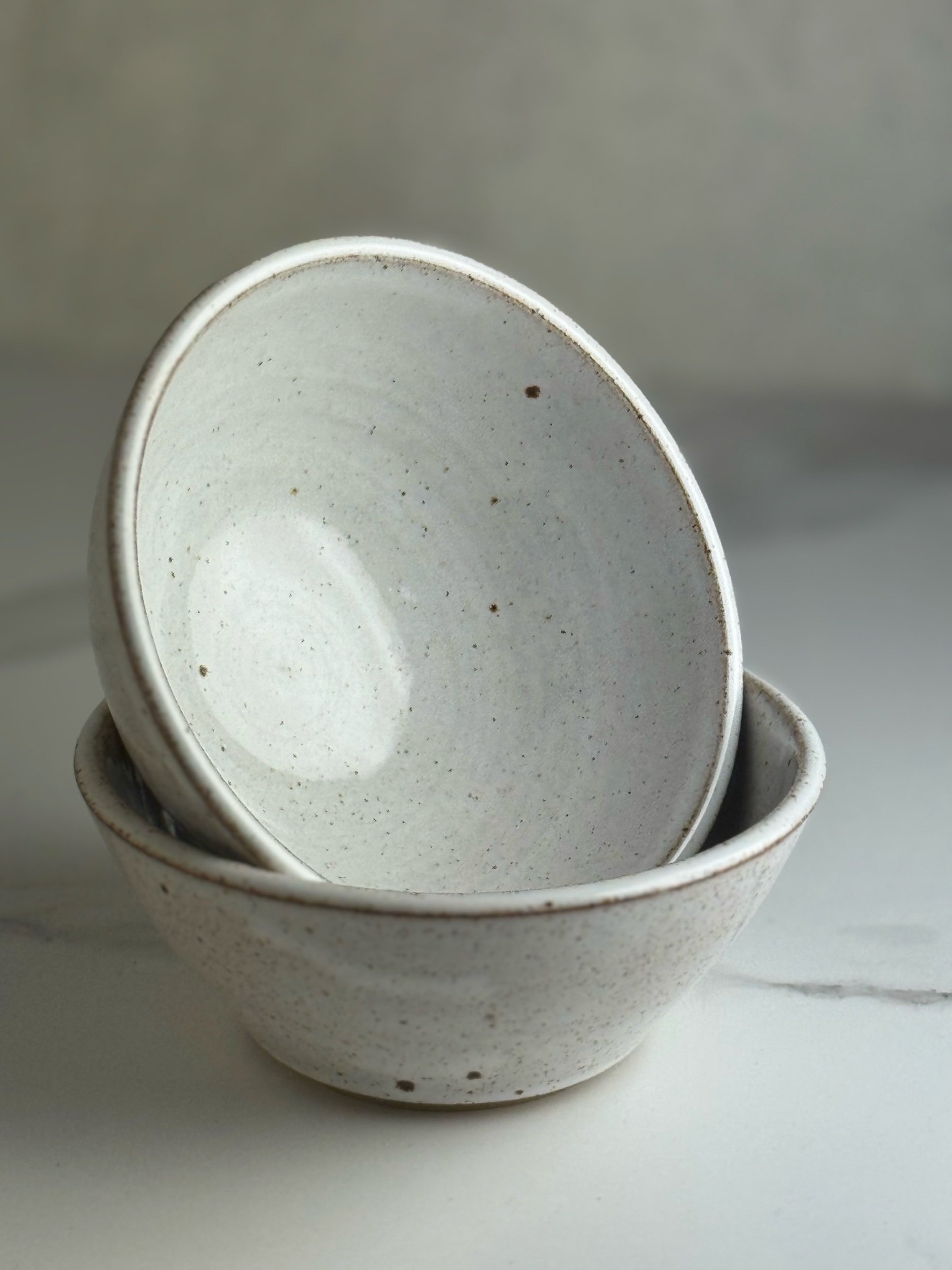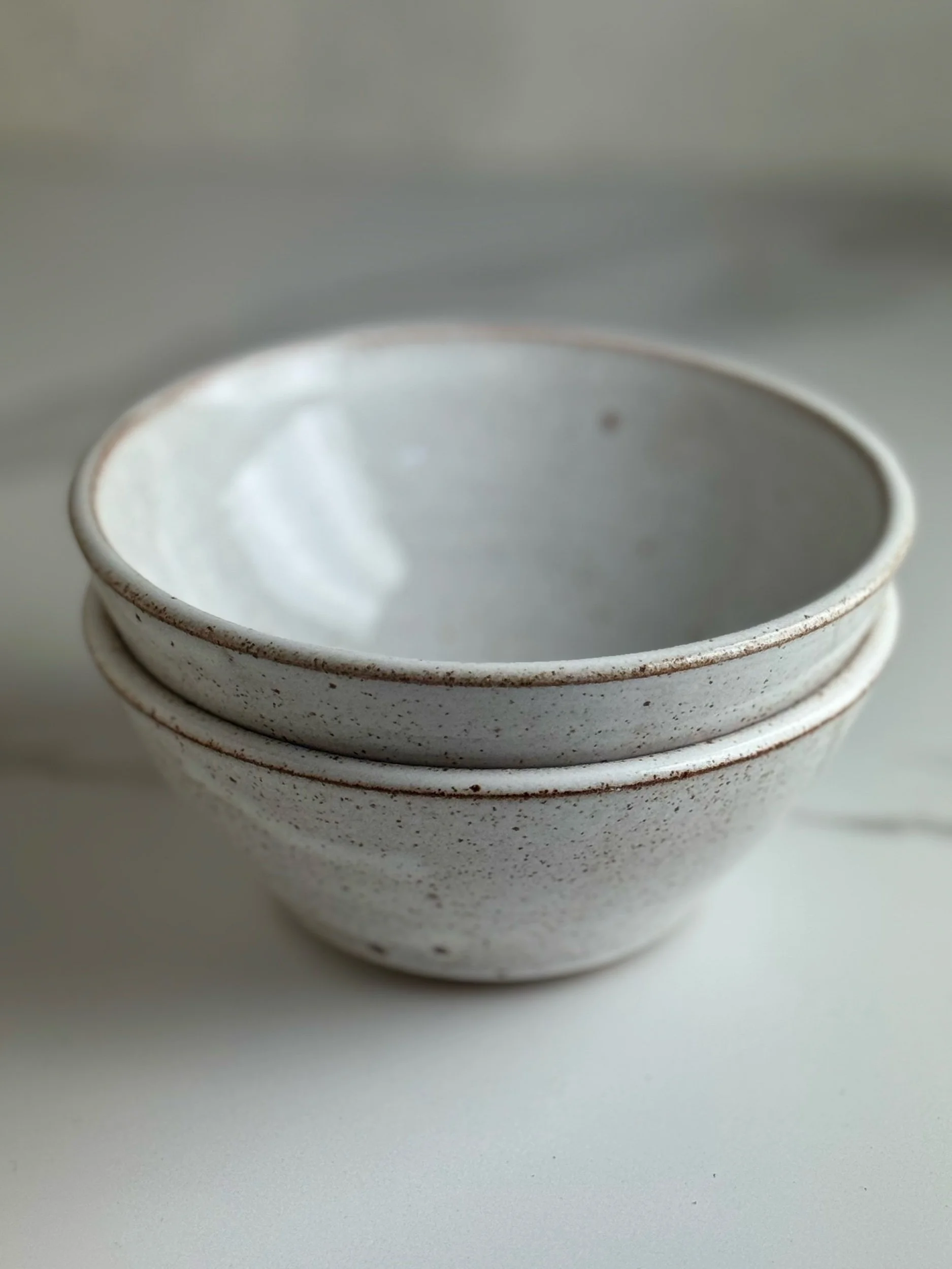 Thrown in a lightly speckled stoneware clay and glazed with a glossy white glaze inside and out.