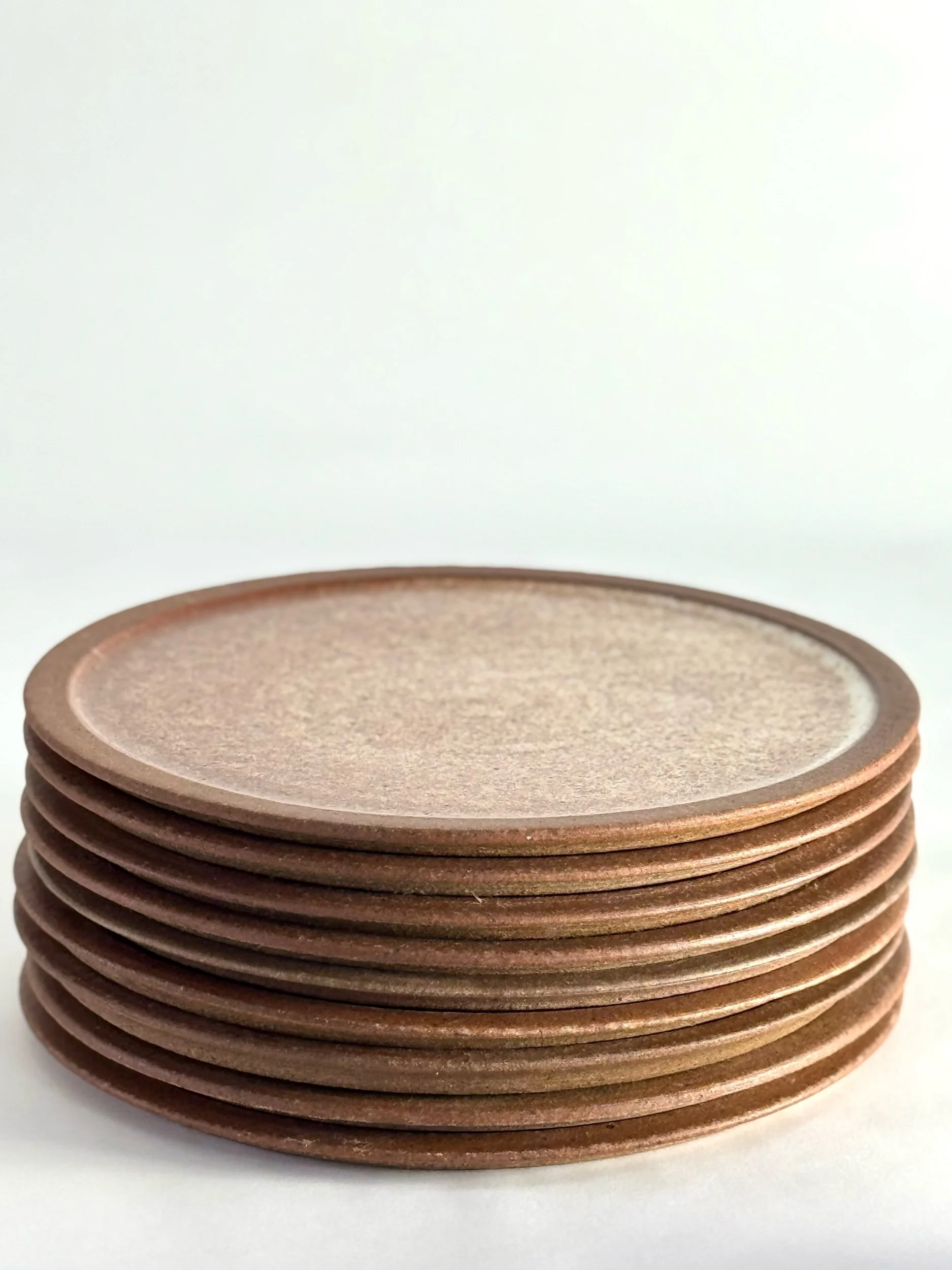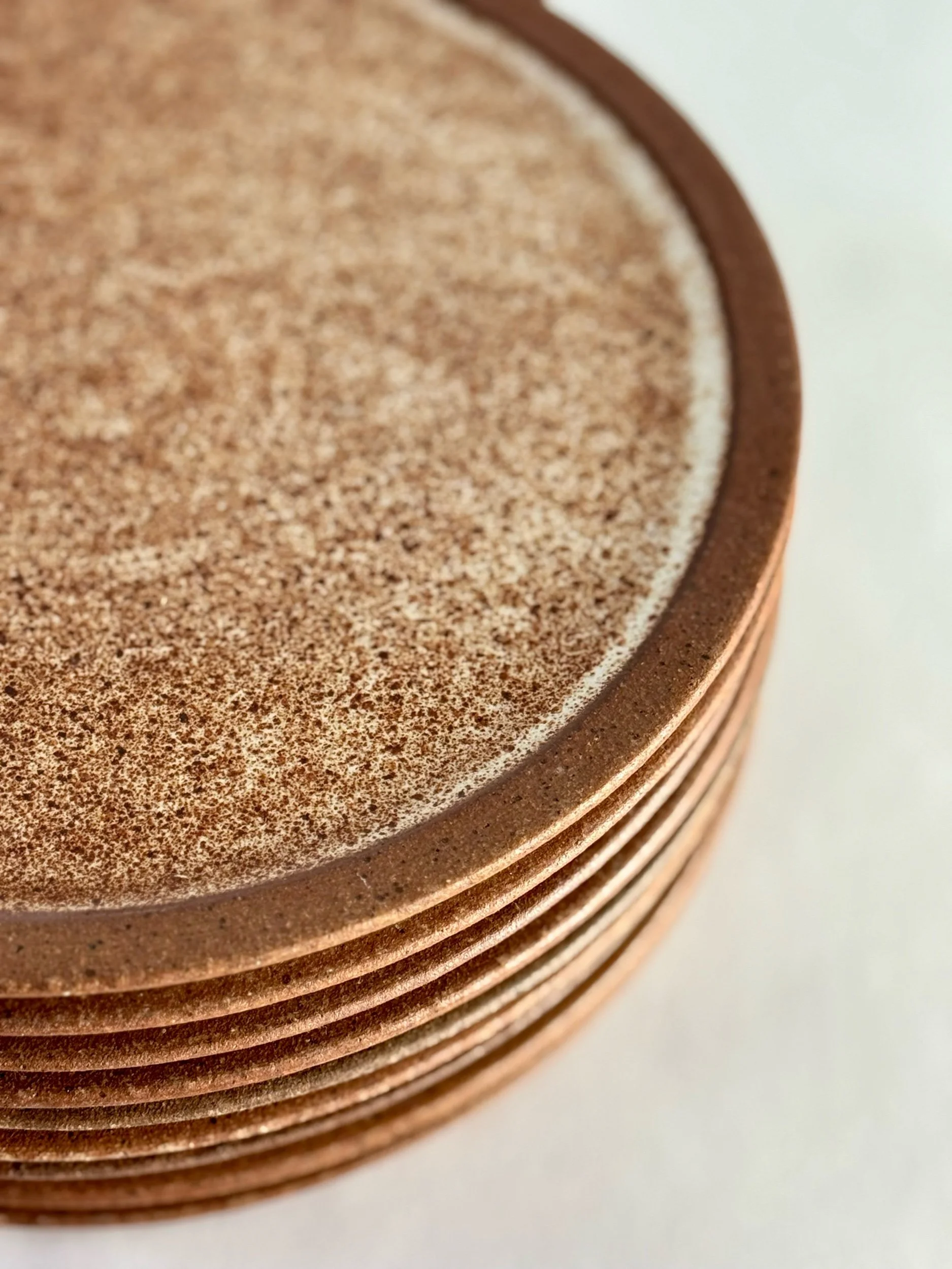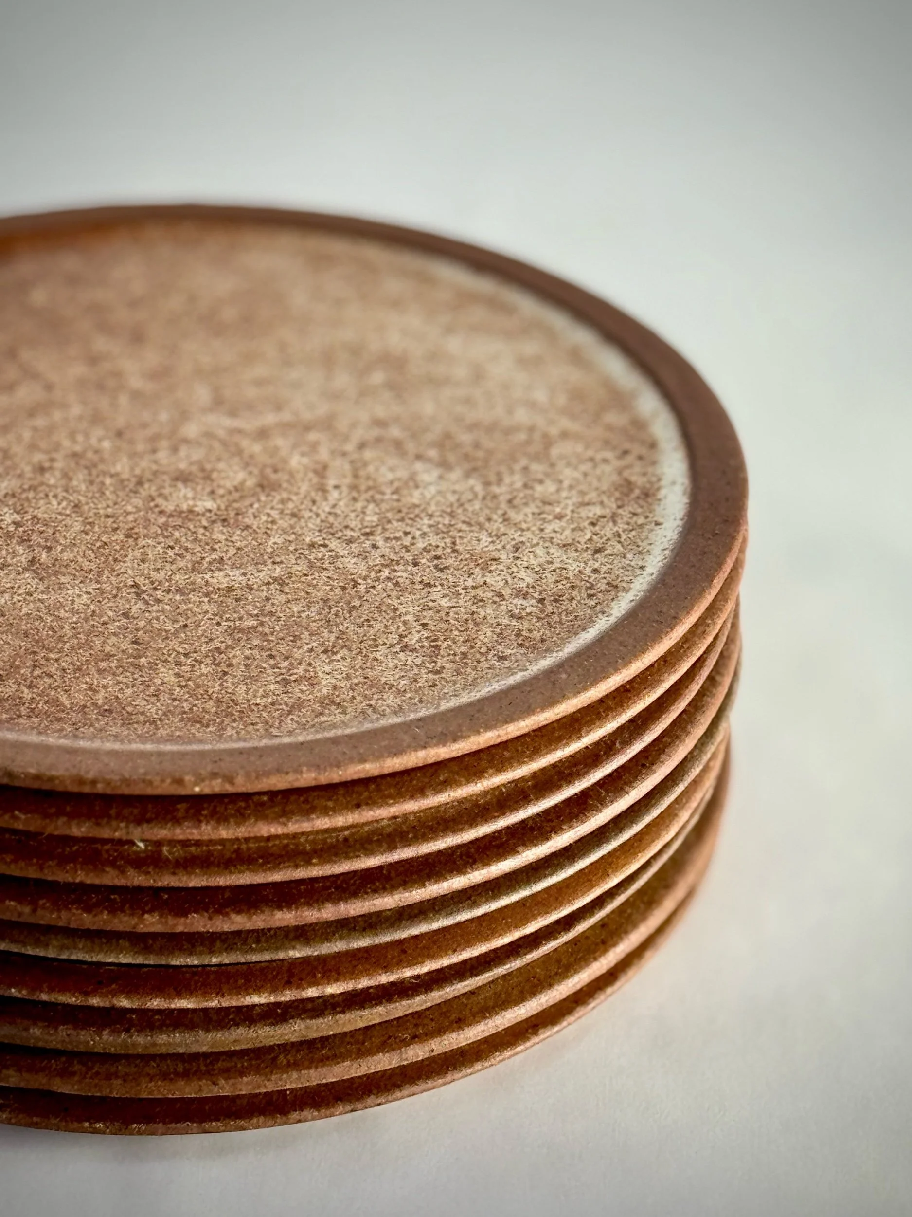 Each plate measures approximately 21cm. They have an ombré glazed centre with an unglazed terracotta rim.