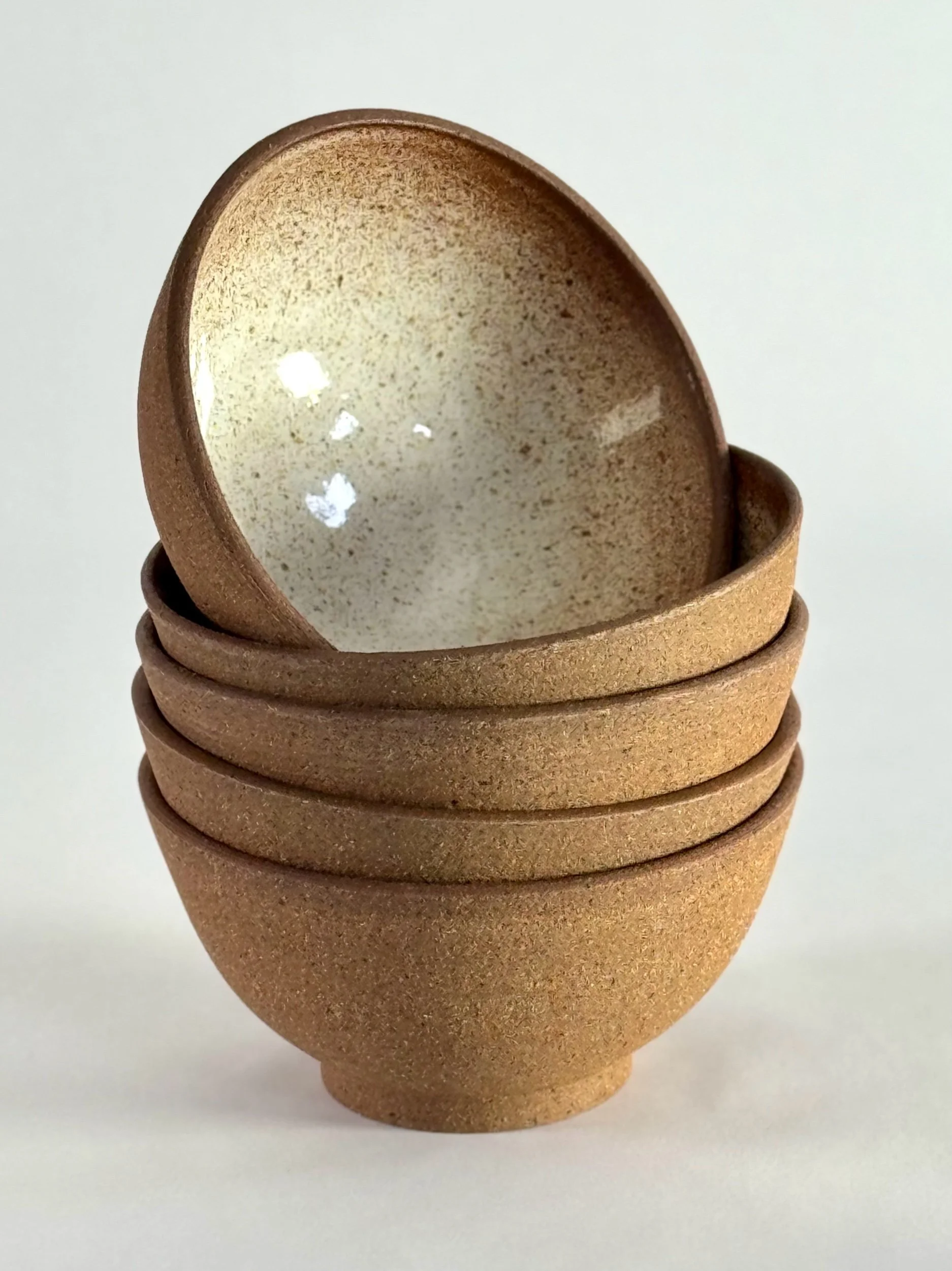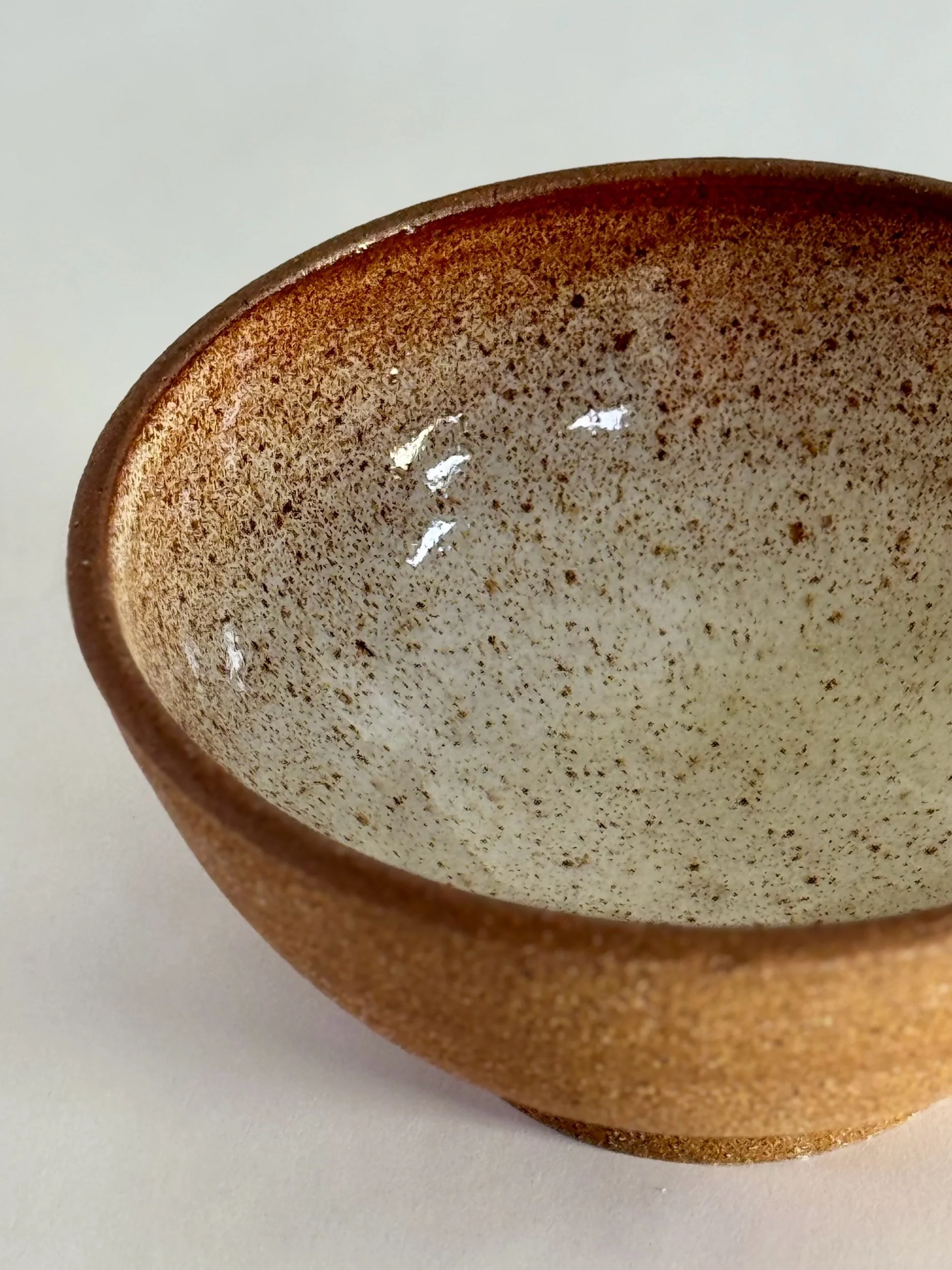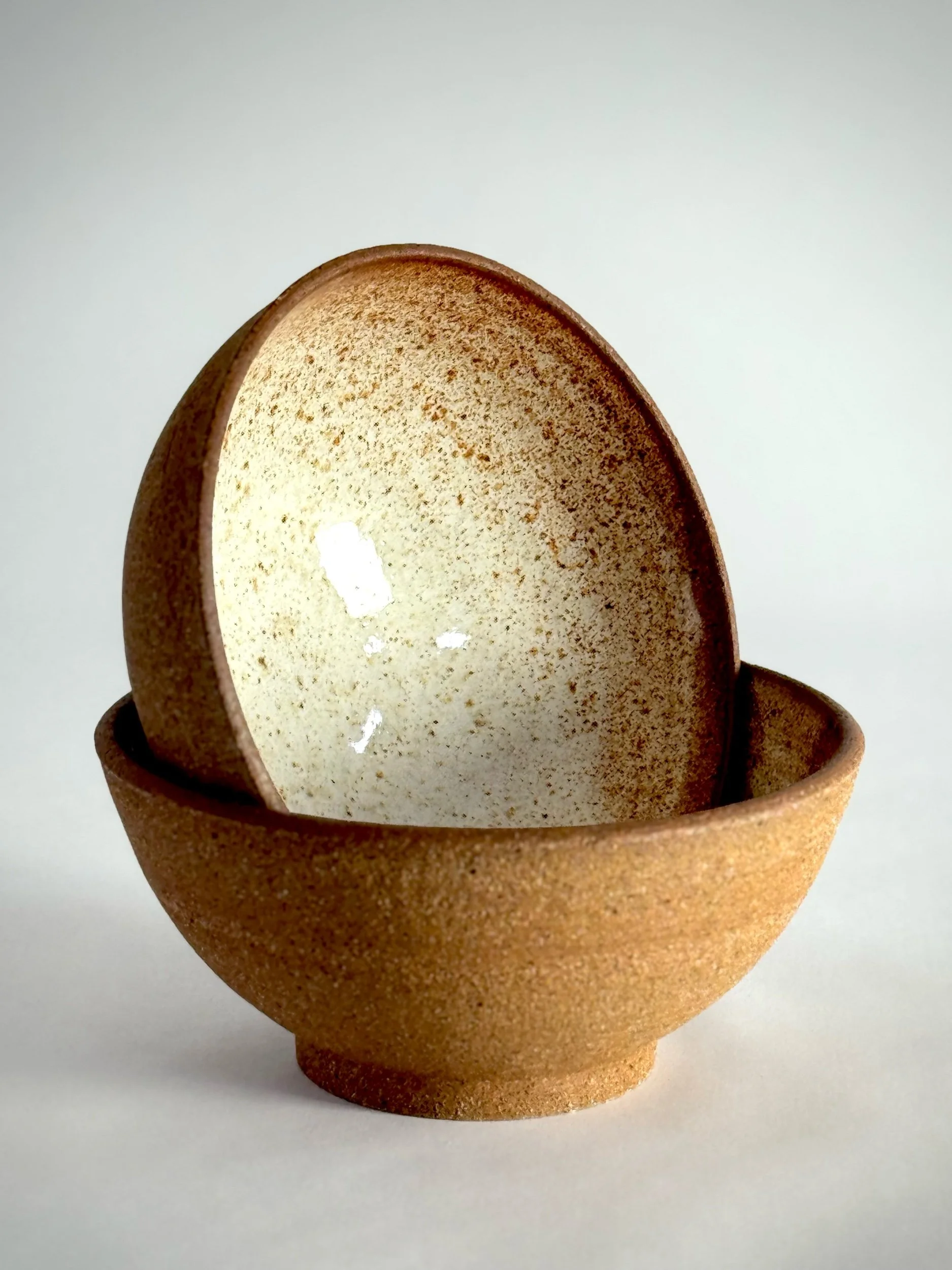 Each bowl measures approximately 14.5cm x 7CM. They have a glossy glazed centre with an unglazed terracotta exterior.